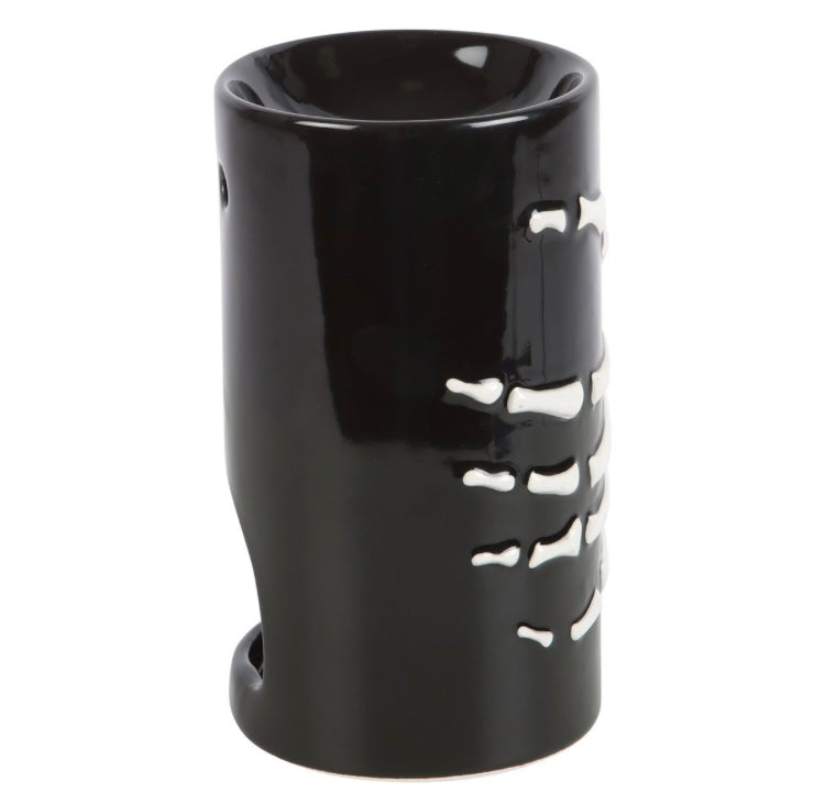 Fragrance your home with this bone-chilling oil burner. Features a skeleton hand wrapped around a black base that's perfect for warming your favourite spooky-scented fragrances. Recommended for use with fragrance oil diluted with water.
